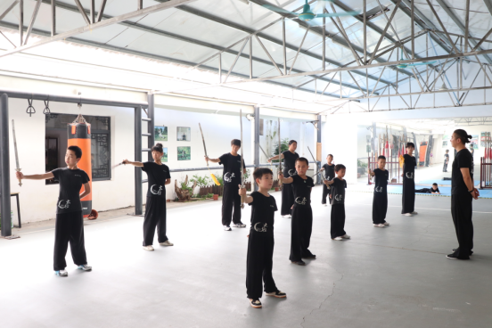 镜头下,推开武当别院的外门,武当的太极拳招式印入眼帘,武者双手握拳、转腿、向前缓缓冲拳、推掌,柔和的动作中藏着几分刚劲。内里,教学师傅带领弟子们舞剑,手肘微微用力,自由甩动、旋转短剑,与优美的舞姿相辅相成,一招一式干脆利落,刚柔相济,虎虎生威。虽然稍显生硬,但稚嫩的脸上洋溢着无限憧憬,生动地诠释了对武术的理解和热爱,充分展示了中华武术的独特魅力和奋发向上的精神面貌。同时,也给观背村的乡村文旅增添了色彩,促进“非遗文化+乡村旅游”的发展。