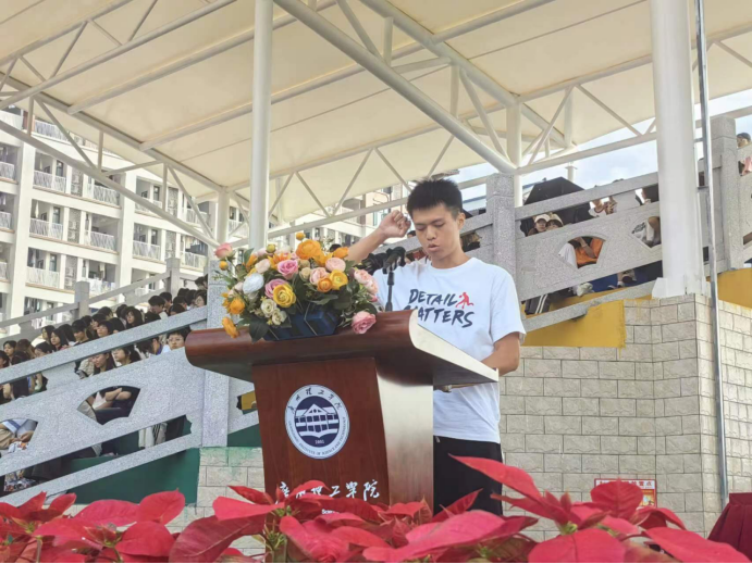 常务副校长伏焕昌在致词中指出,一直以来,学院坚持践行“健康中国”理念,将体育教育作为落实立德树人根本任务的重要环节,积极发挥体育教育功能,推动体育教育改革,通过体育的教育教学,号召同学们为建设体育强国贡献自己的一份力量。同时,他对全体运动员和工作人员表示感谢,希望全体运动健儿继续发扬体育精神,预祝所有运动员能够在比赛中取得优异的成绩。随后运动员代表、裁判员代表依次上台宣誓。