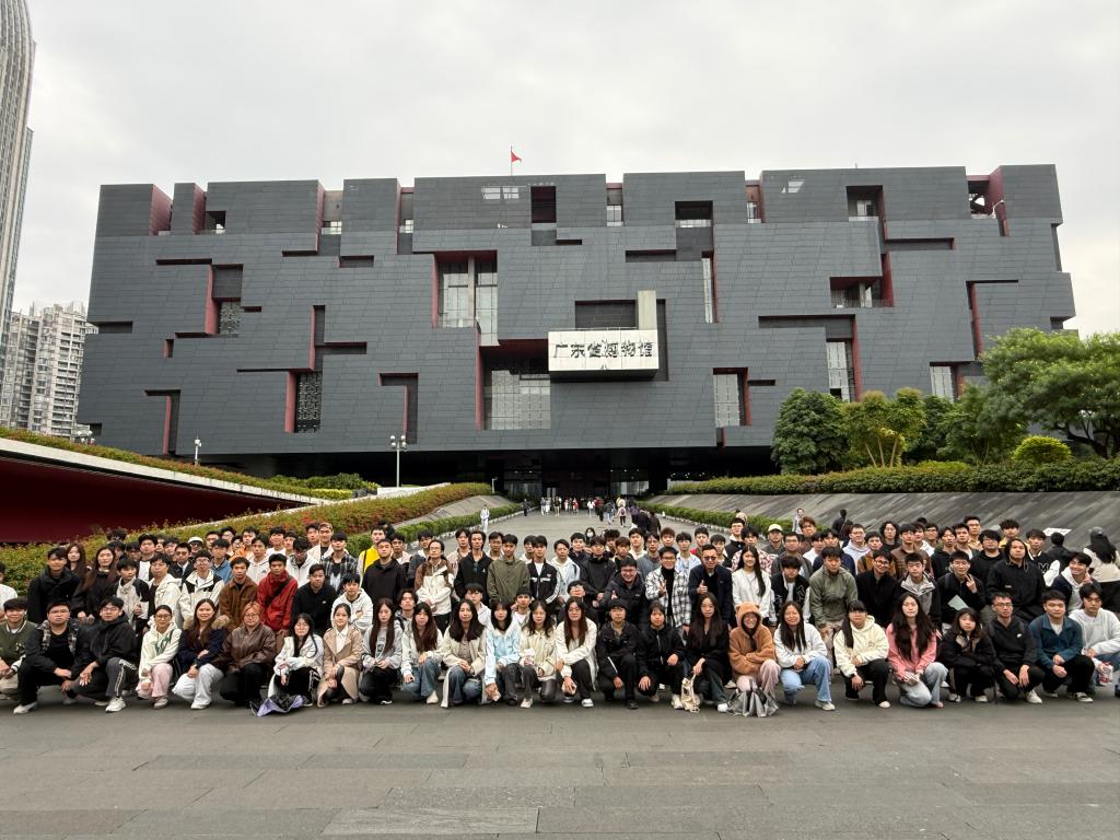 当日下午,参与师生于桥门集合,统一乘车前往广东省博物馆。抵达后,全体成员在博物馆具有标志性意义的“月光宝盒”建筑外观前合影留念。入场前,学院教师就参观纪律与安全注意事项作了进一步强调。随后,各班分组进入场馆,依照预设路线开展自主参观。师生重点参观了潮州木雕厅、广东自然资源展厅及广东历史文化展厅。参观过程中,师生结合专业知识认真观摩展品,详细记录重要内容,并拍摄相关资料以供后续学习参考。下午16时40分,全体人员在博物馆正门集合,统一乘车返回学校。返程途中,师生积极交流参观体会,分享学习心得,现场气氛热烈。