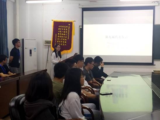 见面会伊始,主持人介绍大会流程,并引导新老成员相互认识。会上林火玲师姐代表第九届成员发言,她向大家分享找工作过程中的一些见识和体会,希望大家可以注重理论知识,鼓励大家多参加学科竞赛,最大限度地开创思维,学以致用。紧接着是第十届成员代表游华富给大家分享了加入工作室一年以来的收获,希望大家可以坚持自己喜欢的东西或者事情,并时常怀有感恩之心,祝愿工作室新晋成员有一个美好而充实的大学生活。