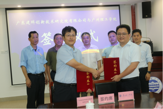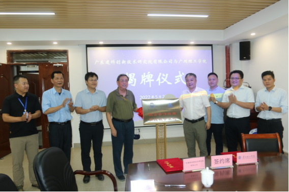 在与会人员共同见证下,伏焕昌常务副校长与广东建科创新技术研究院有限公司副总经理吴瑜灵代表双方签署校企合作协议,胡社军校长与李健总经理共同为“校企合作共建实践教学基地”揭牌。
