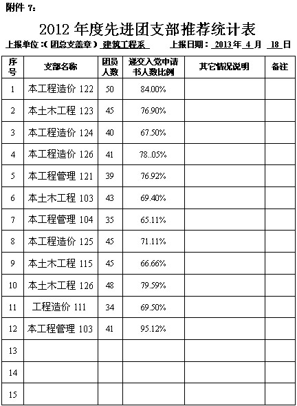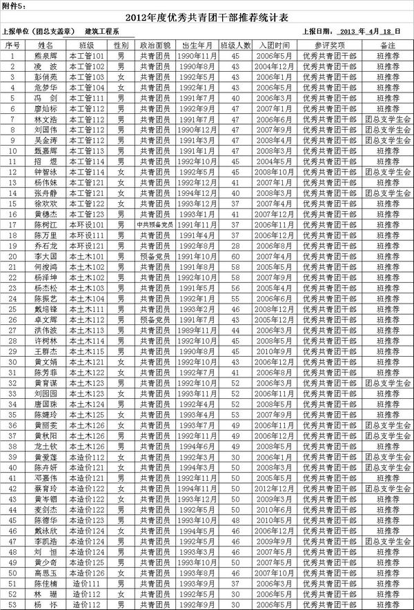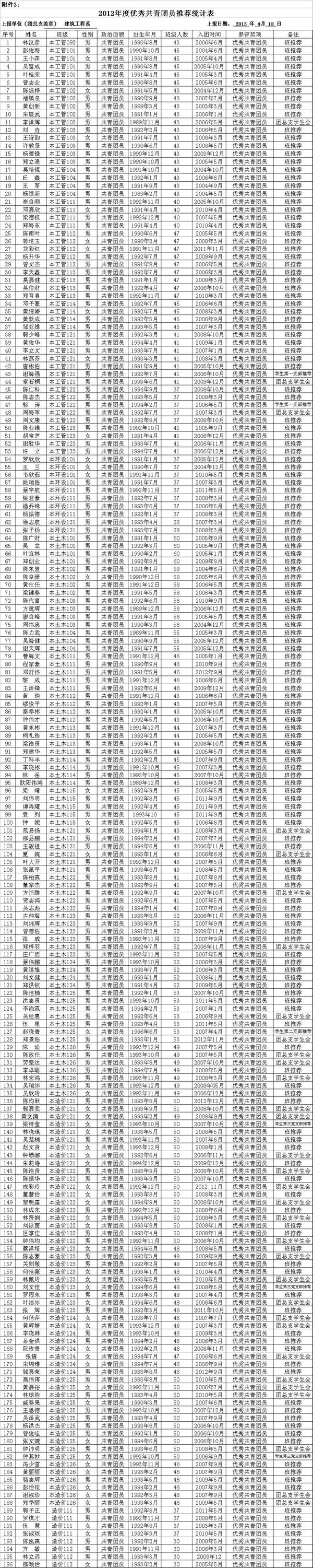 附件: 建筑工程系2012年度“先进团支部”、“优秀共青团干部”和“优秀共青团员”拟推荐名单。