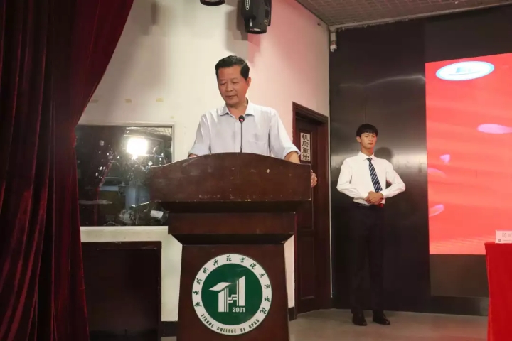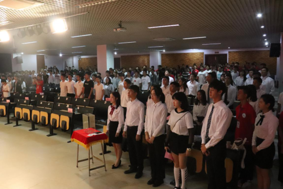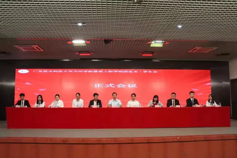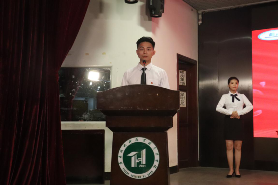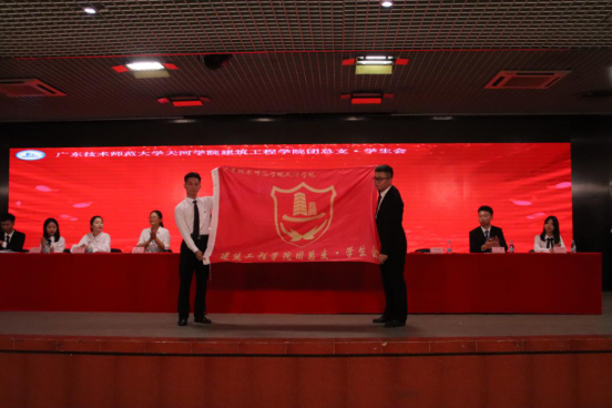 在正式会议中,吴院长上台致开幕词,表达对第十二届团学工作成果的肯定与表扬,并希望新一届团学全体成员提高综合素质。第十二届团总支副书记兼学生会主席汪益森作工作报告,总结我院团学一年来开展的各项工作活动及工作中的优点与不足之处。授牌后,由第十三届团总支副书记兼学生会主席廖华利作就职演讲,他希望同学们能够保持饱满的工作热情,加强各团学员之间的联系交流。紧接着与上一任主席进行会旗交接仪式。