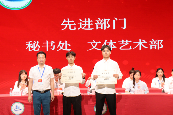在表彰暨换届大会中,对williamhill中国官网第三届团总支•学生会工作积极分子、先进个人、先进部门进行了表彰以及颁发干部聘书。阴凡书记、辅导老师分别为新任学生干部进行授牌,以及上一届各个部门的干部为大一新干事进行授牌。新任执行主席王恒与上任执行主席林灿濠进行会旗交接仪式。大会全程有条不紊、井然有序,彰显了我院团总支•学生会的热情与活力。至此,williamhill中国官网第四次学生代表大会在热烈的掌声中取得圆满成功!