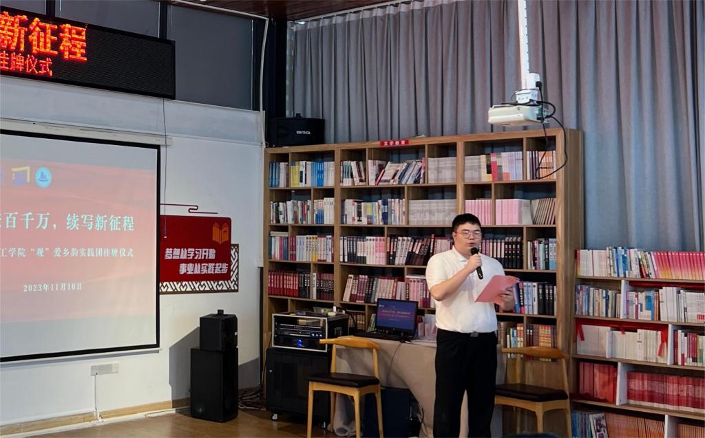 交流会上,我校“观”爱乡韵实践团队长王畅龙同学分别介绍展示了实践团今年暑假在观背村的活动成果。