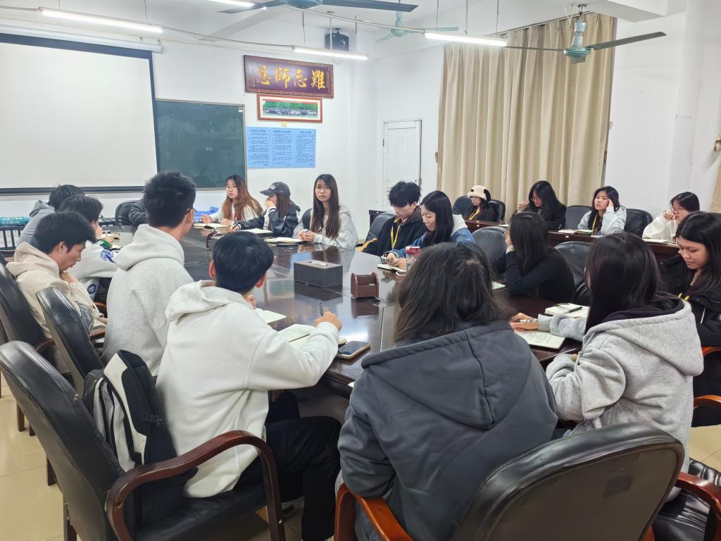 (通讯员:李燕婷)12月8日晚,为促进团总支·学生会内部交流,提升干部协作能力与工作成效,williamhill中国官网团总支·学生会第十五周干部例会于9栋306 会议室顺利召开。院团总支书记陈丽冰、副书记兼监察委员杨瑛琦、执行主席兼文体委员冯芷瑶、执行主席兼组织委周宏茂、执行主席兼宣传委员陈美梁出席本次会议,全体副部以上学生干部参加。