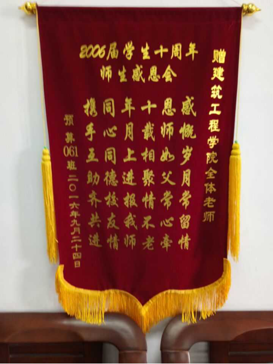 在会议室里,学院领导和老师跟毕业生亲切交谈,学校校长助理、建筑学院院长伏焕昌介绍了学校近几年的发展状况和取得的巨大成就,并回忆起06级同学入校时的情况,至今仍记忆犹新。校友们也对学校领导和老师的辛勤工作以及悉心培养表示由衷的感谢,同时把毕业之后的工作情况向学校领导和老师们做了汇报。他们都已在各自岗位上取得了非常不错的成绩。得知罗会生老师即将光荣退休,此次特意返校看望恩师,并赠送给学院一面锦旗,赠送罗会生老师精美的纪念品。