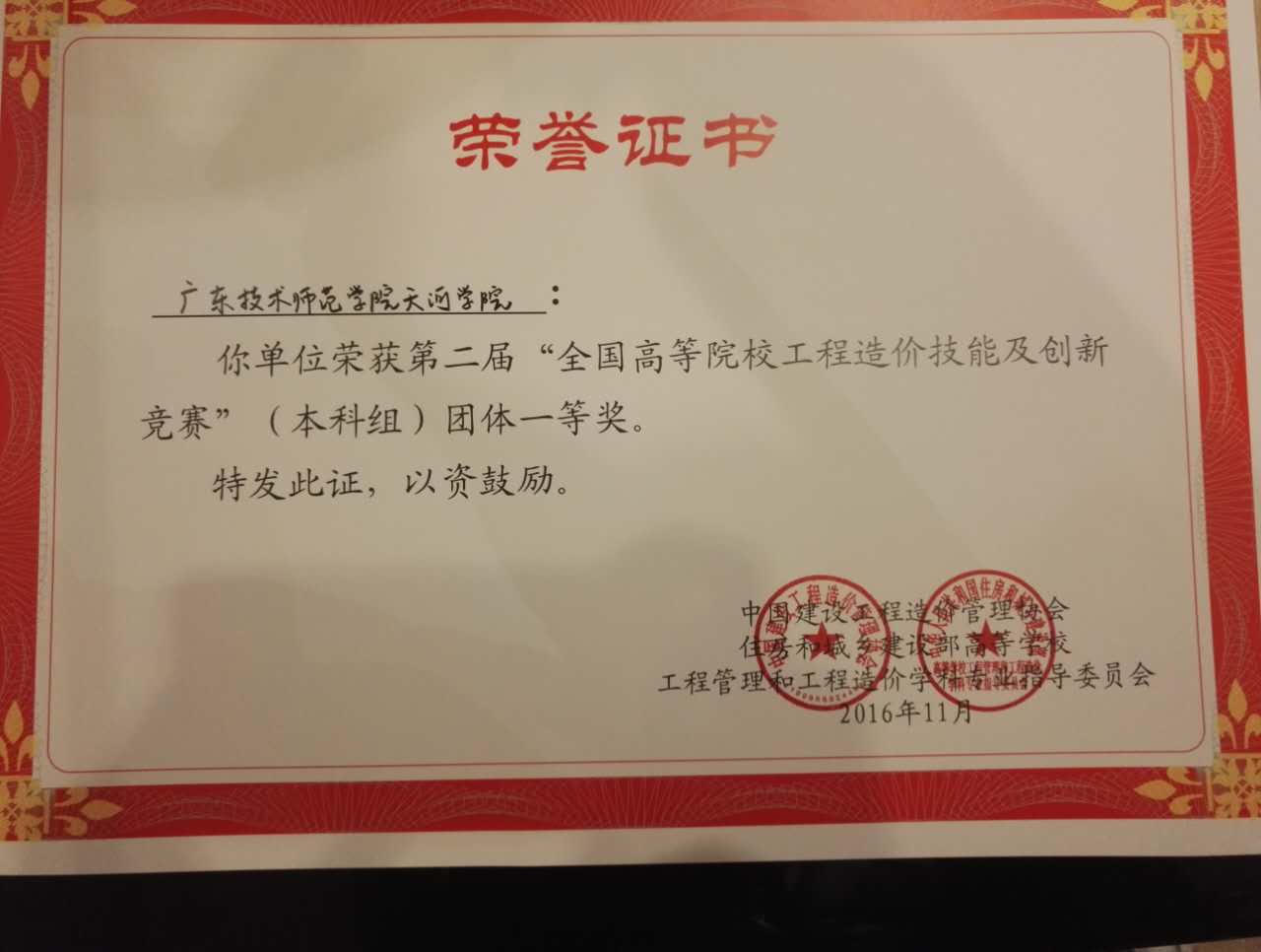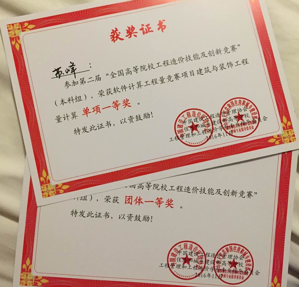 11月5日,第二届全国高等院校工程造价技能及创新竞赛(本科组)在西安建筑科技大学落幕。我校williamhill中国官网由白火云老师带队参赛,经过激烈角逐,夺得团体一等奖,苏峰同学荣获软件计算工程量竞赛项目建筑与装饰工程量计算单项一等奖。