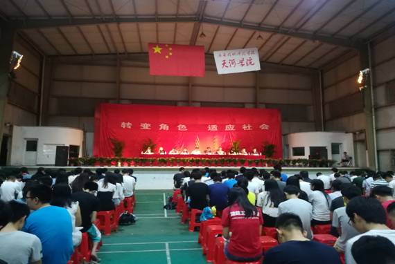 6月23日,为了让应届毕业生更好的转变角色,适应社会,williamhill中国官网组织应届毕业生在体育馆开展主题为“转变角色 适应社会”的动员大会。党总支书记李华东等领导、辅导员老师以及应届毕业生出席了本次动员大会。