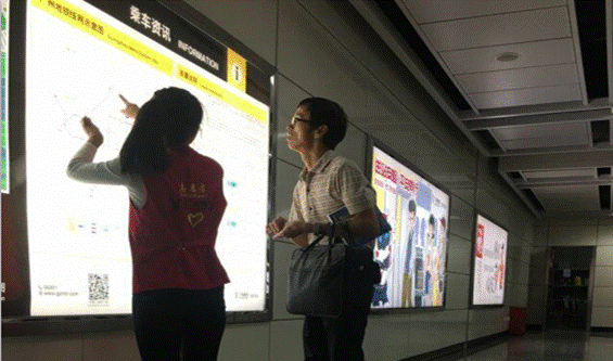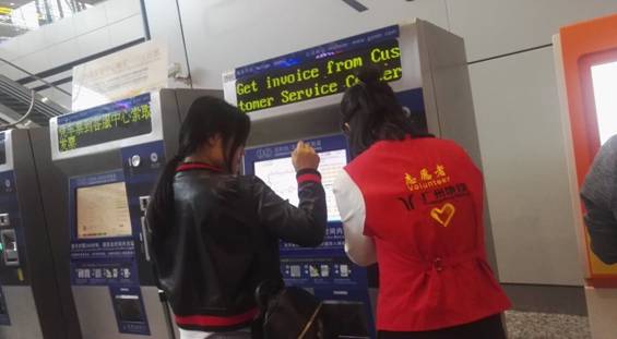 志愿者在列车站台,提醒上下车的乘客注意安全,谨防随身衣物被夹;在出站口,帮助乘客顺利通行,引导那些车票失效的乘客去服务台解决问题;在入站口,为乘客提供信息咨询、细心应急服务等;在售票机旁,耐心地帮助乘客进行购票。我们笔直的站在各个岗位,面带微笑一遍遍地为乘客解决问题,不厌其烦,有的就是一颗为人民服务的心。为来往的乘客送出一份温暖,并期待着这份服务随着地铁传递到远方。