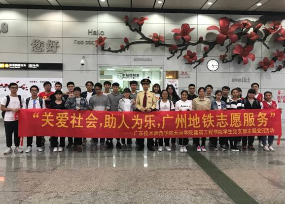 广州的十一月,秋风微起,但是却吹不走志愿者的热情。学生第一党支部志愿者们2017年11月4日13:00怀着激情在13:00准时来到地铁站。经过地铁工作人员的培训后,组长下达任务,志愿者们就投入到了紧张又新奇的志愿服务中去。