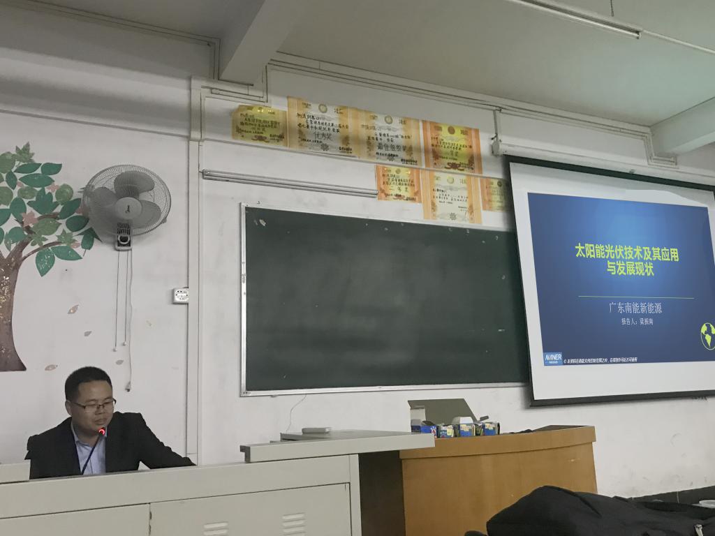 会议结束后,梁振南总经理又给建环141、151的同学们做了一场《太阳能光伏技术及其应用与发展现状》的学术报告。报告从光伏为什么会爆发式发展、光伏原理和技术、光伏应用、光伏现状与未来、南能简介等五个方面介绍了光伏技术的现状和发展,学生们很感兴趣,受益匪浅,讲座结束后,梁振南总经理和与会师生进行了更加深入的交流、讨论。报告在愉快的气氛下落下了帷幕。