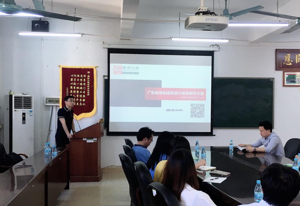 9月21日,为了进一步加强校企绿建战略合作,我校邀请北京绿建之窗公司董事长苏玉斌先生和北京绿建之窗公司的代表团来我校做关于“广东省绿色建筑设计综合解决方案”的主题讲座。我院副院长侯庆华、实验室主任阴凡、王嘉贤老师出席此次讲座,侯院长主持会议。