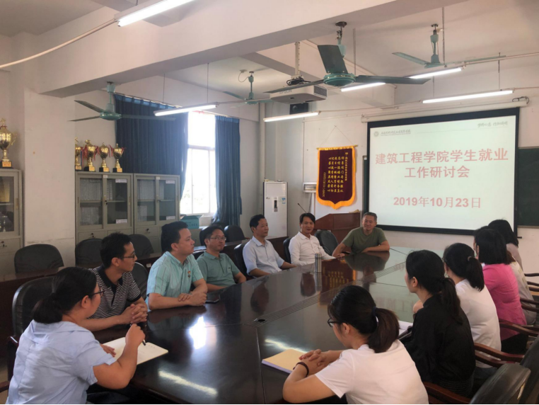 黄书记指出,按照学校即将推动的“三全育人”体系,对学院学生就业工作提出了要如下要求:一要求老师要“不忘初心,牢记使命”,在教书中落实育人,全程关心学生成才;二是创新就业工作责任制,实行毕业设计指导老师责任制,全面推进学生的就业;三是要求全院教工,引进优质企业参与校园招聘,多渠道全方位推荐我们的毕业生。