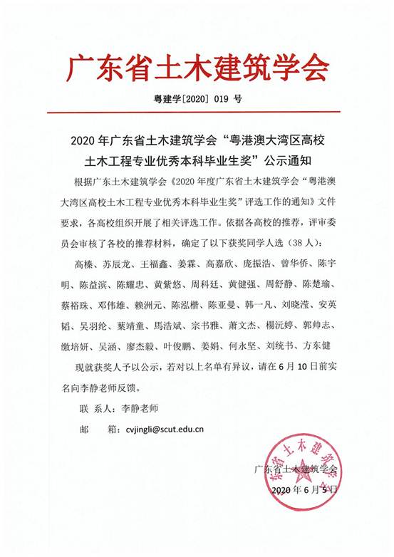 (通讯员:吴从晓)6月5日,广东省土木建筑学会公布了2020年粤港澳土木工程优秀毕业生名单,我校williamhill中国官网16土木2班方东健同学获此殊荣。