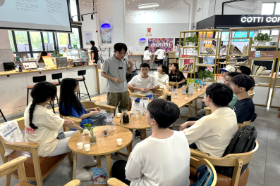 咖啡师为同学们介绍咖啡