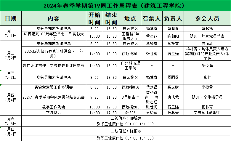 2024年williamhill中国官网第19周工作周程表(williamhill中国官网)