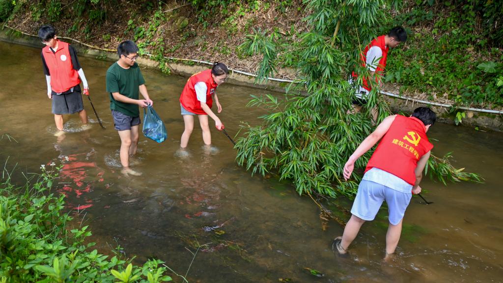 2024年7月7日,“为了深入贯彻学习习近平生态文明思想,助力莲湖村公共环境卫生的文明化,建设宜居宜游的绿色乡村。williamhill中国官网“莲”动农商实践团开展以清零垃圾污染,畅通河道血脉,振兴乡村家园为主题的志愿活动。队员们身穿红色志愿服,拿夹子、垃圾袋等工具,对乡村路面上的空瓶、纸屑、塑料袋以及烟头等杂物进行了彻底清理,以实际行动弘扬志愿服务精神,热情投入到乡村卫生清洁中去,让莲湖村变得更绿更美。他们每一次对河面上漂浮垃圾地打捞,每次对河道孔堵塞物地清理,每一次对岸边垃圾地拾起,都是对环境的呵护,都是对乡村振兴的有力支持。用实际行动诠释保护环境不仅仅是一句口号,更是实实在在的行动。
