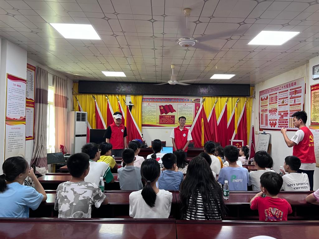 会议伊始,实践团队长庞志涛进行了安全教育重要性的宣讲,向孩子们介绍了本次安全教育课的活动流程以及活动目的。活动开展期间,“坡笑”清澜实践团成员们通过融合了实际案例与防溺水教育视频等宣传方式为三合村的孩子们开展防溺水安全知识讲座。他们深入浅出地阐述了溺水发生的种种原因、其潜在的严重危害,以及一系列行之有效的预防措施与急救策略。尤为值得一提的是,"坡笑"清澜实践团成员们还着重推广了预防溺水的“六不准”黄金法则。同时,也强调了在面对他人溺水情况时,不盲目下水施救,而是保持冷静,智慧利用周围漂浮物如木板、救生圈等辅助工具,采取科学、安全的救援方式。