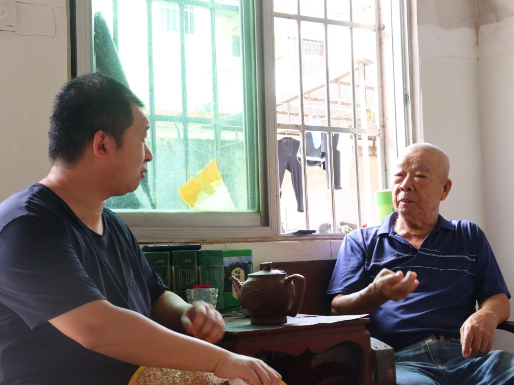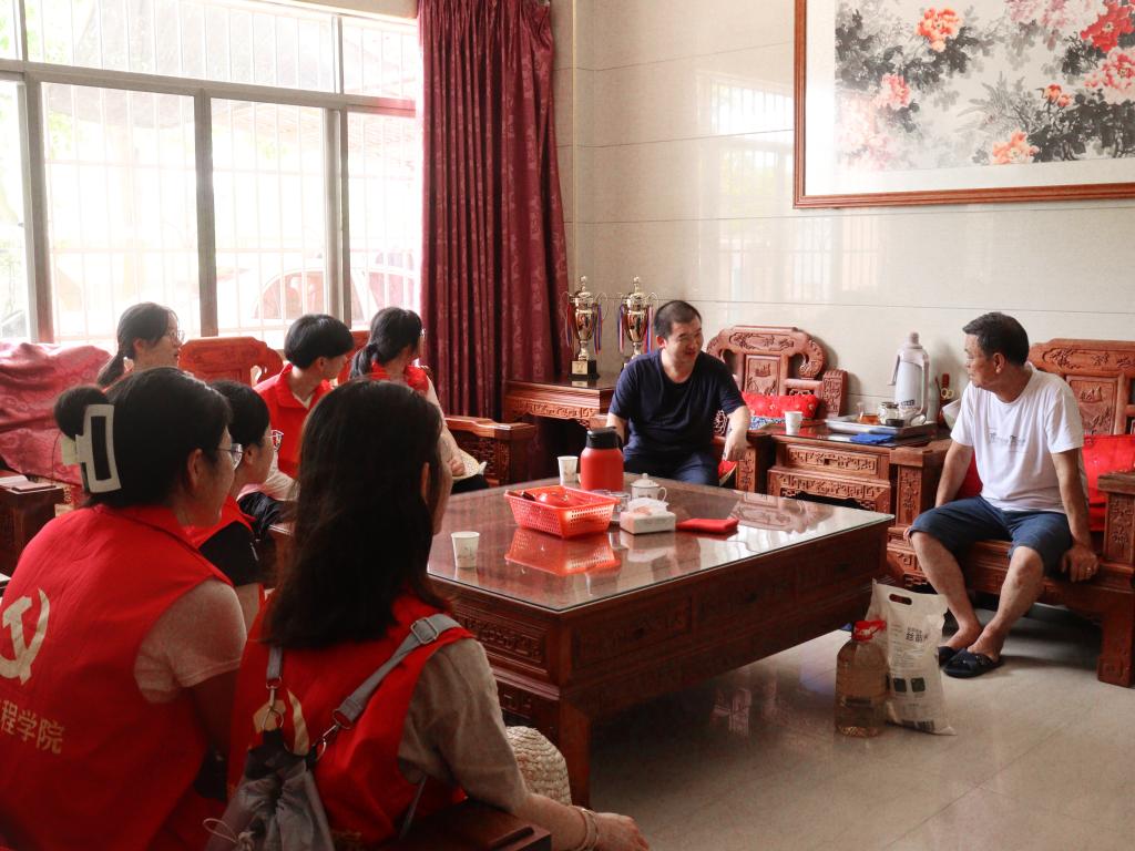 在探访过程中,实践团还拜访了老党员郑观灵,他是一位退休老兵,曾亲历越南战争。郑老同志积极践行“退役不褪色,退伍不退志”的誓言,在观背村乡村振兴建设中,始终全心全意为人民服务。他的事迹激励着每一位在场的青年学子。