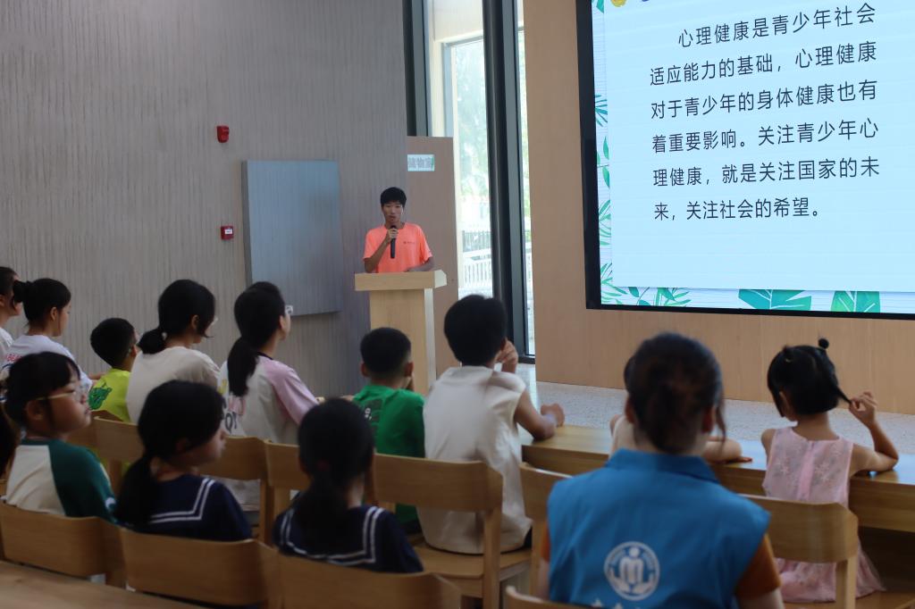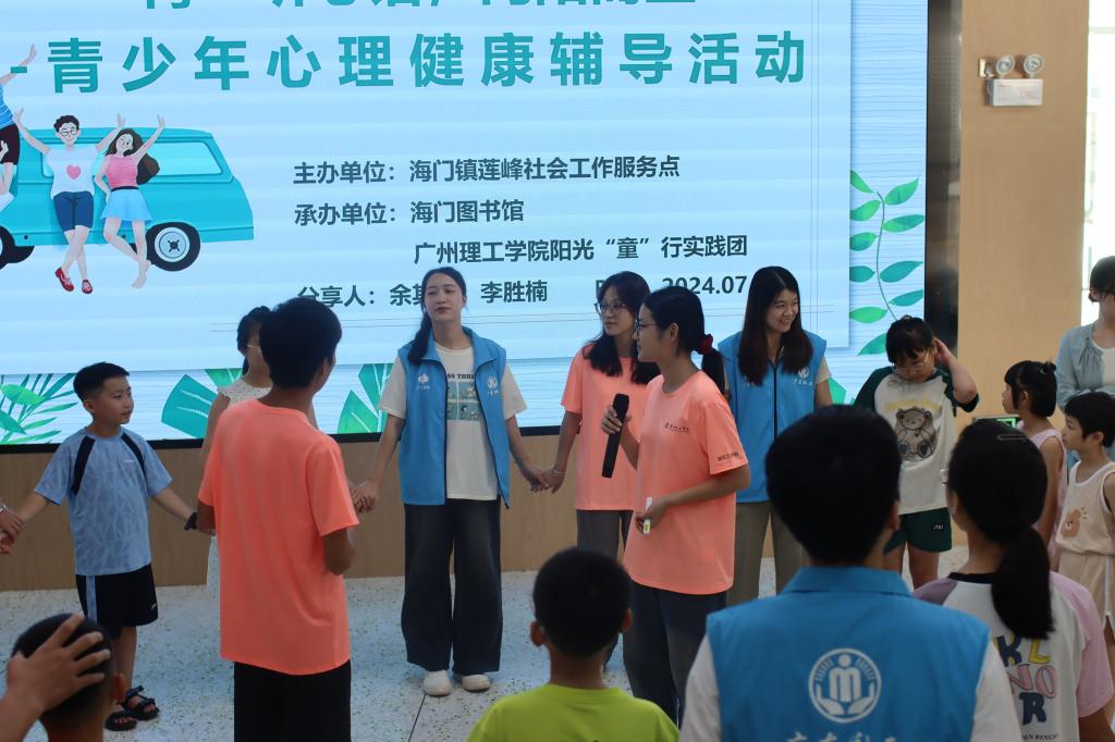 (李胜楠)为关注青少年心理健康,提高青少年心理素质和自我调节能力,海门镇莲峰社会工作服务点联合海门图书馆、williamhill中国官网阳光“童”行实践团于7月16日下午在海门图书馆举办了主题为“青”听心语,向阳而生的青少年心理健康辅导活动。