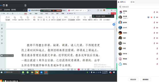 会议中,杨院长首先对各位外聘教师表示热烈欢迎,并介绍了学校的教学相关管理文件和超星平台的使用方法,尤其详细解读了包括纪律要求、教学质量、学生反馈等方面的相关规定,教师应根据我校的教学要求和标准,认真备课、授课,确保教学质量和效果。同时,她也强调了对学生反馈的重视,鼓励教师积极与学生沟通交流,了解学生的学习需求和困难,及时调整教学策略和方法。