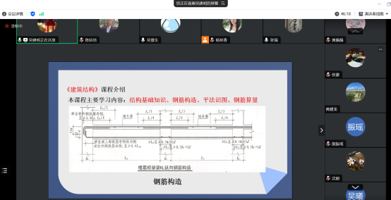 吴景生老师讲的安全与环境保护课程能从法律法规角度切入,对工程设计和施工的安全与环境保护问题进行详细讲解;吴建明老师的建筑结构课程从工程需求角度引入,详细讲清结构和平法注记的来源与要求;张豪老师从项目特征引入,以案例谈到工程项目管理与监理的要求;陈健老师结合教学大纲给课程定调,对建设法律的各个概念作了详细介绍;王中平老师用以受力分析作为重点,讲清楚力的概念与原理;张瑞老师对比国内外工程参建方,理清国内外工程项目的异同;韩泽军老师从力的基本概念出发,引出力的各种重点应用;吴曦老师讲清钢材生产基本原理与缺陷的关系,讲清钢结构病害原理引出设计要求。