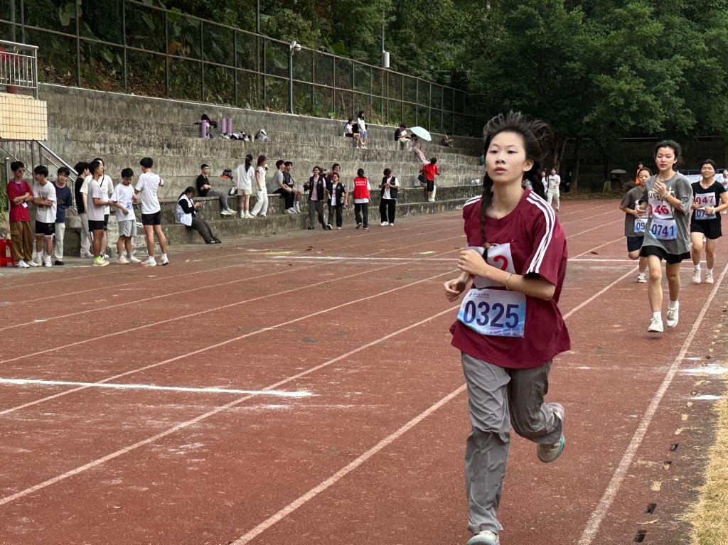 在女子1500米的赛场上,陈卓莹同学挑战着自己的极限,她目光坚定,步伐沉稳,一步一个脚印,用汗水书写坚持。在不懈的拼搏后,她赢得了第八名的荣誉,闪耀在赛场上。