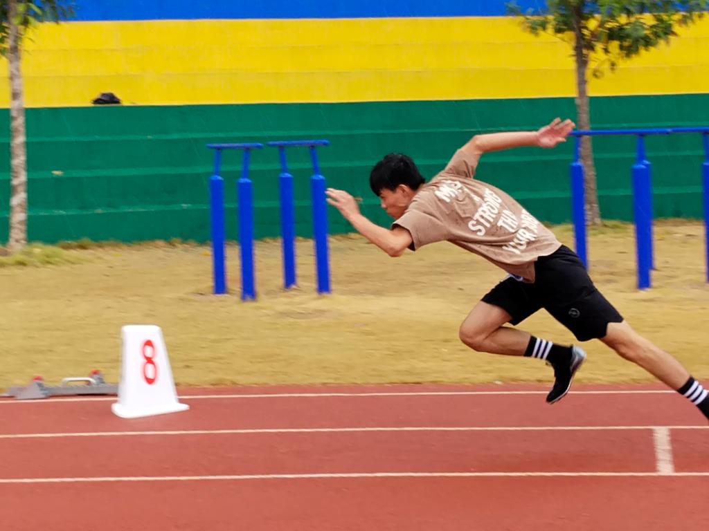 在男子400米的比赛中,陈思源同学表现抢眼。他似一道闪电划过跑道,犹如风驰电掣,以势不可挡的姿态冲过终点线,成功勇夺第一名。那枚闪耀的金牌挂在他的胸前,成为了他实力与拼搏精神的最好证明。