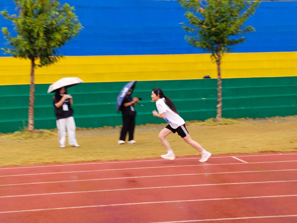在女子400米的赛道上,谢可同学展现出了“巾帼不让须眉”的气概。她凭借顽强的毅力和出色的速度,一路奋勇向前。她的身影在赛道上划出一道亮丽的风景线,最终斩获第八名的佳绩。