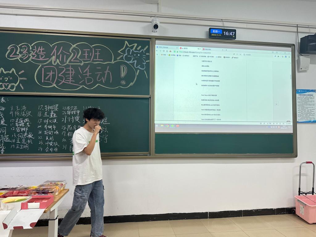活动伊始,屏幕上播放着大家大一时的照片,唤醒了同学们深藏心底的温情。随后,学院十大歌手之一的杨泳煜同学带来了一首动人的歌曲,让现场更加温馨。高潮则是游戏部分,分别是数字炸弹以及你划我猜,同学们分组比拼,现场气氛热烈,游戏不仅考验了逻辑思维与反应能力,更加深了同学间的了解与信任。班委还准备了零食与饮料作为惊喜,让团聚的喜悦更加浓厚。