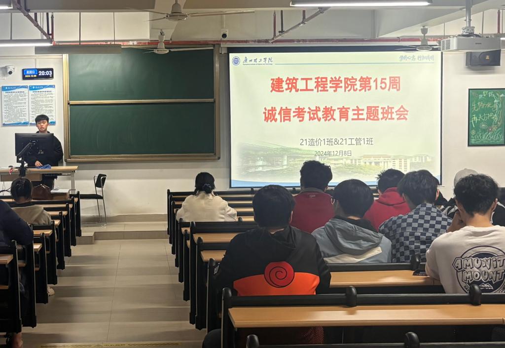 (通讯员:邱星畅)12月8日晚,为加强考风考纪教育,营造优良考试氛围,培育德才兼备的新时代青年,williamhill中国官网于13栋教学楼的各个班会教室顺利召开了诚信考试教育主题班会,班会由各班级班长主持,学院辅导员、班导师以及全体学生共同参与。