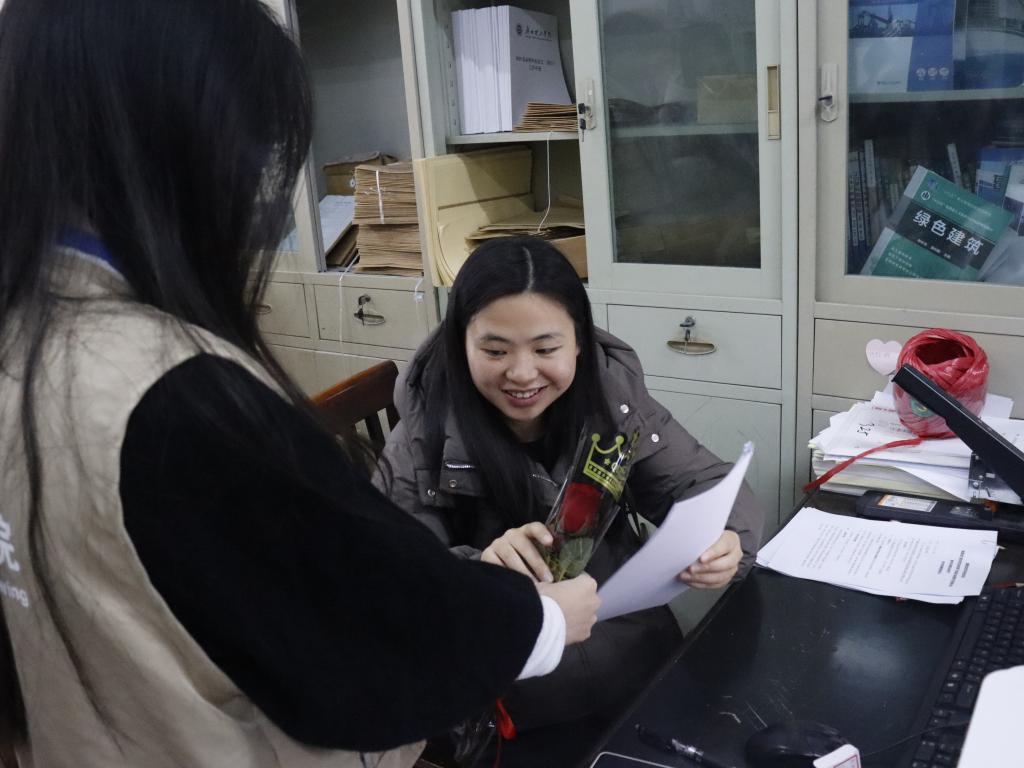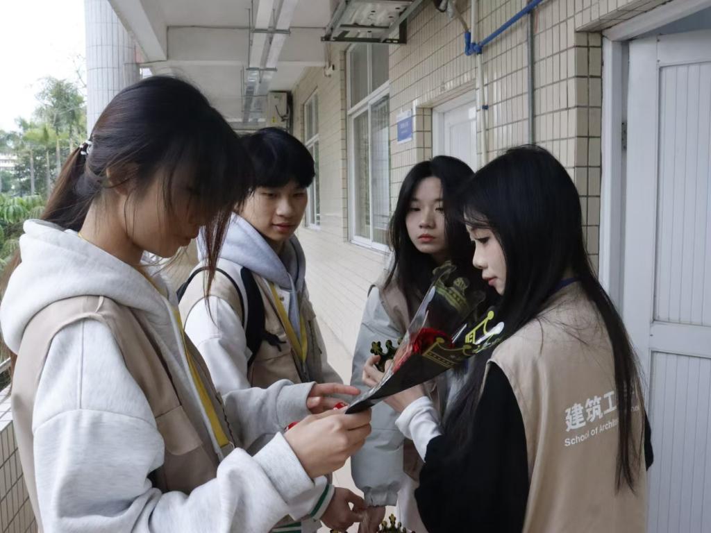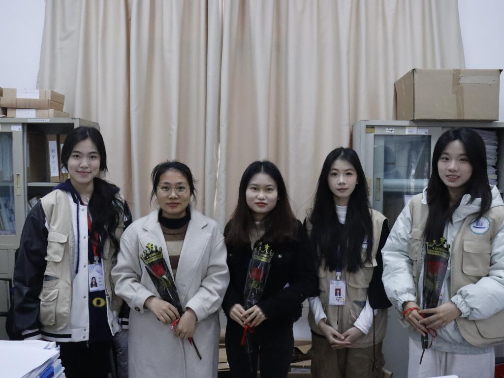 活动伊始,院学生代表早早来到现场,手捧着精心准备的鲜花和礼物,带着真诚的微笑,步伐轻快地踏入九栋教学楼教师办公室,开启这场温暖的节日献礼。学生代表们将鲜花逐一送给女教师们,并送上一句句真挚的“妇女节快乐”,这真诚的话语和娇艳的花朵,瞬间让女教师们的脸上绽放出灿烂的笑容,校园里洋溢着一片温馨与欢乐的氛围。
