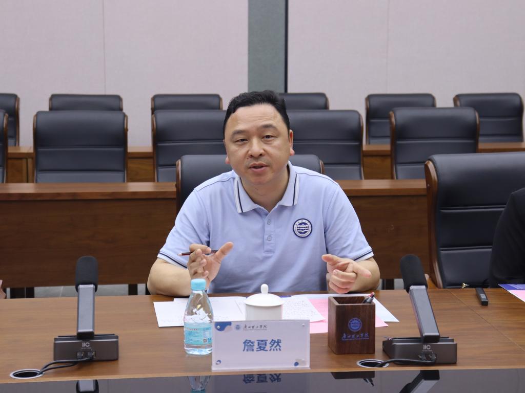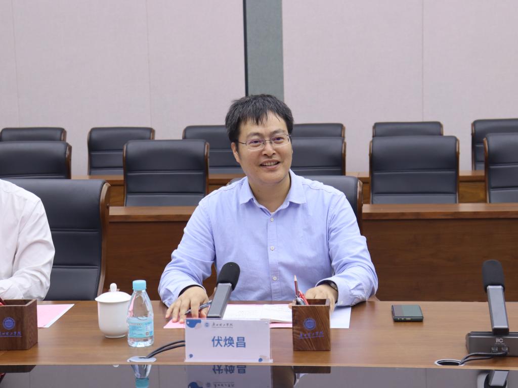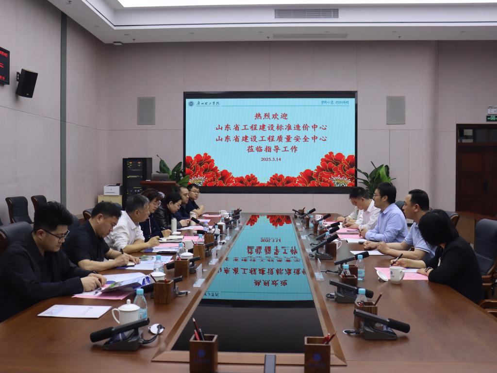 随后,在工程楼一楼会议室举行交流会议。会议伊始,参会人员观看学校宣传片以及产教融合校企合作宣传视频,伏焕昌常务副校长致欢迎辞。他强调,我校始终致力于培养高素质应用型人才,期待通过此次交流,进一步拓展合作空间,实现资源共享、优势互补。胡雪晶主任和嵇飙主任依次介绍了山东省在建筑工程标准、质量安全及科研创新方面的最新进展,并提出了双方拟合作的项目概况。在交流环节,詹处长详细介绍了我校在科研创新、实验室建设及实践教学方面的突出成果。