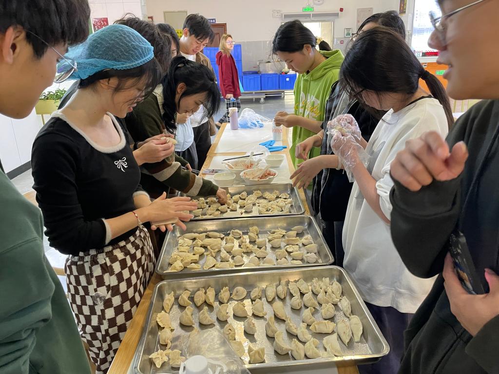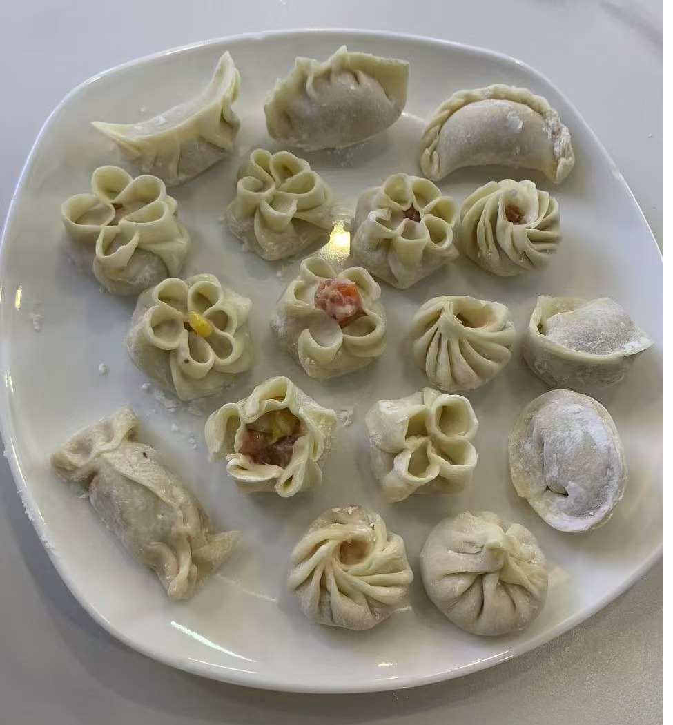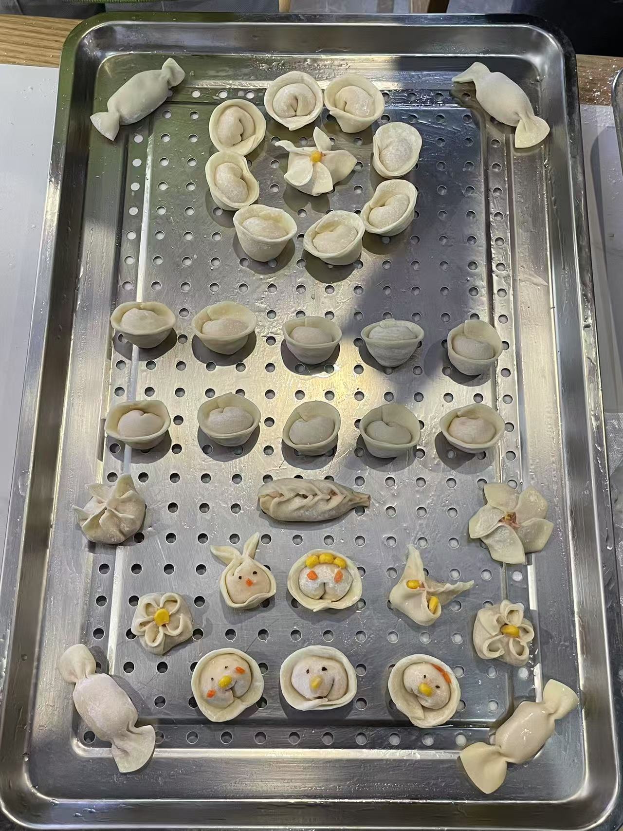 活动伊始,食堂工作人员为同学们详细讲解了包饺子的技法要点,从和面、擀皮到包制,每一个步骤都耐心示范。随后各小组领取食材工具,迅速投入创作。在 30 分钟的创意造型比赛中,“花朵饺”“元宝饺 ”“动物饺”等作品层出不穷,同学们用灵巧双手赋予传统美食新的生命力。同学们从创意性、美观度等维度进行现场评分,“最佳创意奖”“ 最萌造型奖 ” 等荣誉花落各家。