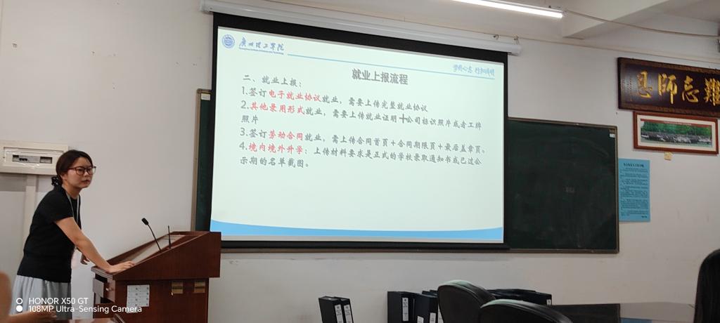 会议最后,马冠华书记主持 2025 届毕业生就业推进会。郑佳老师汇报了学院目前毕业生就业情况,并详细解说就业上报流程及就业上报小程序的使用,为进一步推动就业工作的顺利开展提供支持与指导。