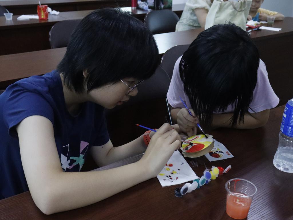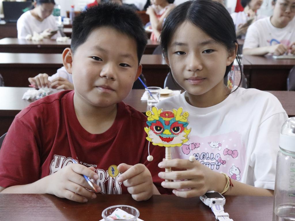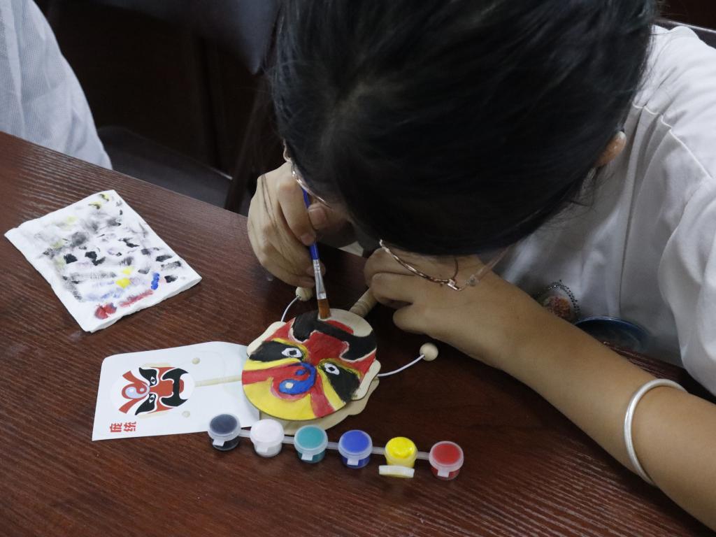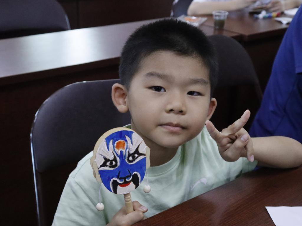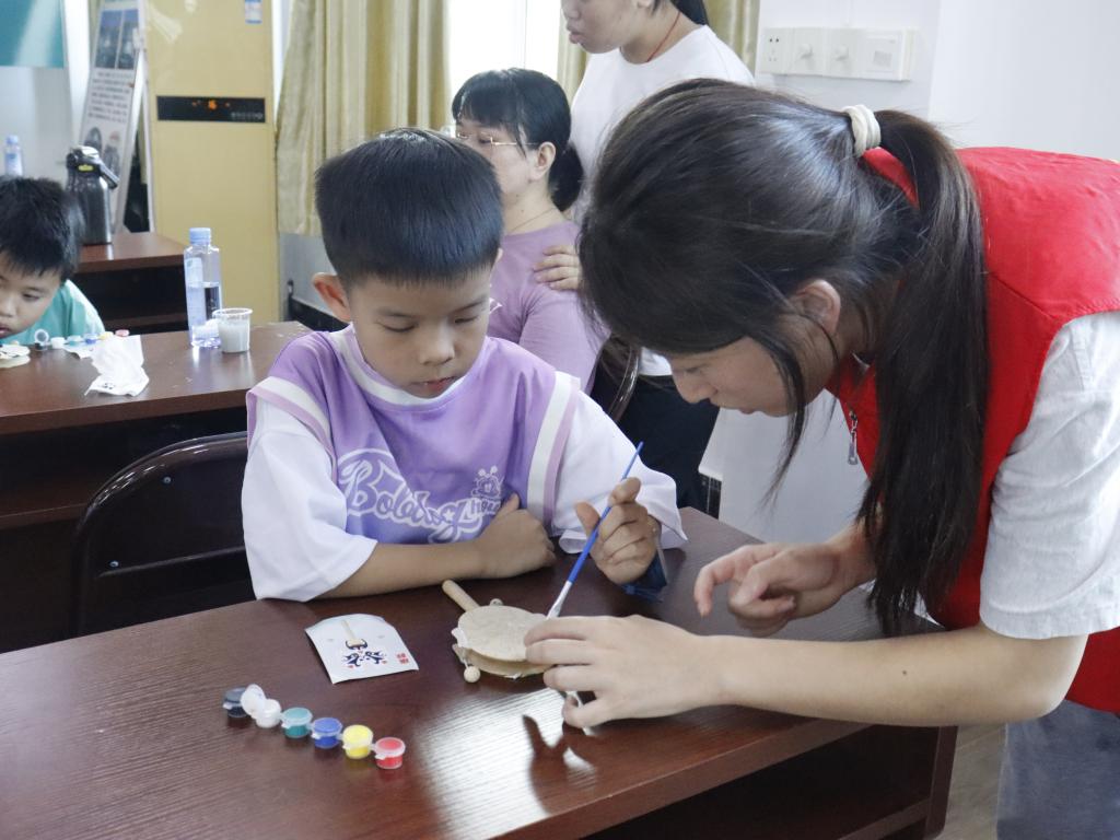 理论与实践紧密结合。动手实践环节中,小朋友们手持画笔,在脸谱胚体上精心调色、勾勒线条,将传统色彩与个性创意巧妙融合,赋予脸谱全新艺术魅力。同时,实践团成员耐心指导调色比例与笔触技巧,针对构图难题提出建议,助力小朋友们将创意完美呈现在脸谱绘制中。