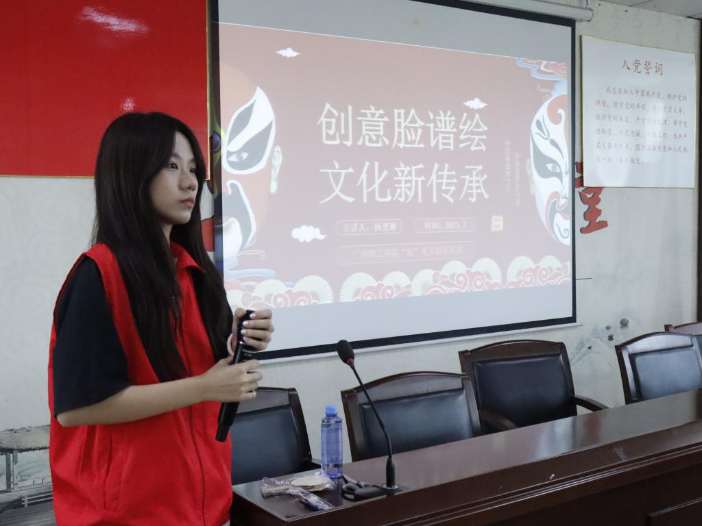 (通讯员:杨楚雁)为弘扬中华优秀传统文化,让传统戏曲艺术焕发时代生机,williamhill中国官网“观”爱乡韵实践团于7月7日在观背村委会三层会议室开展“创意脸谱绘,文化新传承”实践活动。活动旨在通过理论讲解与动手实践相结合的方式,以传统脸谱艺术为载体,将非遗文化与现代创意深度融合,激发参与者对京剧脸谱文化的探索热情,提升观背村儿童、青少年及公众对中华优秀传统文化的认知与理解。本次宣讲的主办单位为惠州市博罗县观背村;承办单位为williamhill中国官网“观”爱乡韵实践团;协办单位为博罗县手有余香志愿者协会。