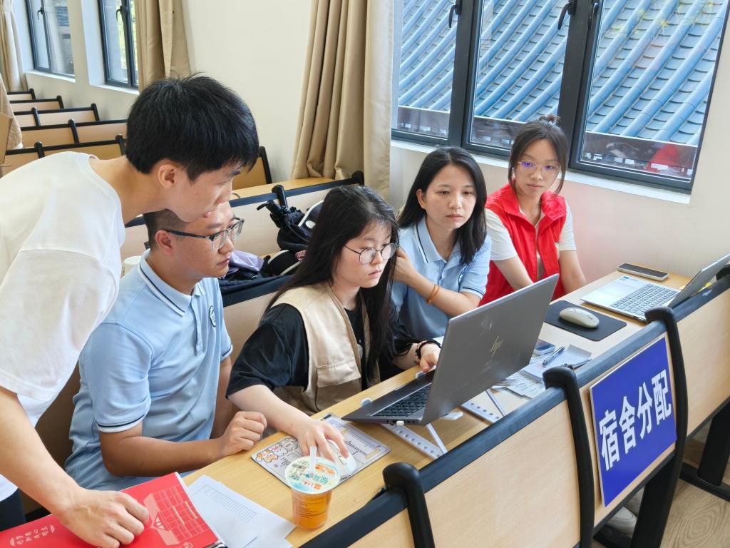 9月5日清晨8点,迎新工作准时启动。统一着装的志愿者们精神饱满地守候在各个接待点,热情迎接每一位新生和家长,引导他们顺利完成报到手续,并主动帮助搬运行李至宿舍,耐心解答关于校园生活的各类提问。志愿者们在报到台前认真核对、收集新生的入学材料,确保学籍信息准确无误。学院领导与老师现场值守,为遇到缴费缓交等问题的同学提供切实可行的解决方案,以高度的责任感和满腔热情为2025级普高新生顺利入学保驾护航。