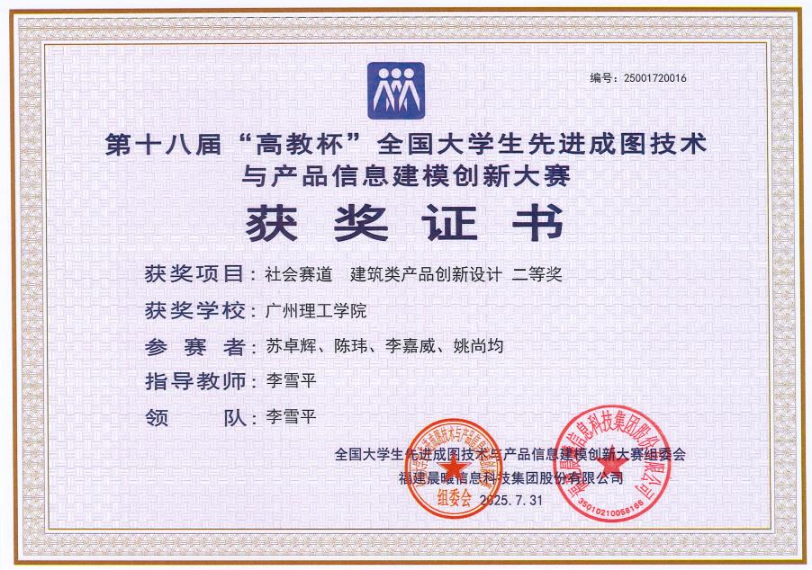在科技赋能建筑的趋势下,williamhill中国官网秉持“以赛促学、以赛促练”理念,近日在第十八届全国大学生先进成图技术大赛社会赛道暨“晨曦杯”BIM数字工程技术创新大赛中,凭借扎实功底与协作能力脱颖而出,装配式技术研究工作室“五力全开队”获二等奖。
