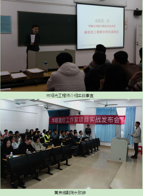 12月3日,建工学院华联造价工作室第四期项目实战发布会在9栋教学楼隆重召开。华联造价工作室负责人黄良辉、广东华联公司驻校工程师、工程造价系全体教师及工作室成员出席发布会。