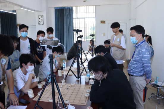 棋场如战场,参赛者或深思不语、或把棋定格在半空中、或托腮思考、或手敲桌子需求最佳走法。双方你来我往,既为了比赛的胜利,也为了在与对方的博弈中提升自己的实力。直播间中的观众也是深深地被这些精彩的棋局所吸引,不停地为各自支持的棋手加油助威。在进行了激烈的角逐后,侯樽乐、谢增乐、彭建畅、羊泓安、吴彦光、古育辉六位同学成功晋级决赛。