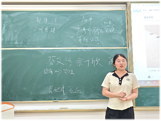 首先,戚蕊老师正式介绍了一起参会的人员,他们是校友17工管班郭伟河师兄,18工管班杨宇师姐,21造价班余千欣、21工管3班的蔡文河、陈冠同学。