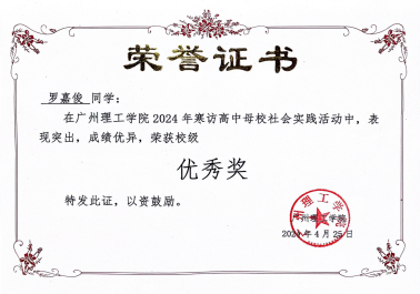 此次荣获校级优秀奖的罗嘉俊同学表示,他深感荣幸和自豪,同时也感谢学校给予的机会和支持。他将继续努力学习,不断提升自己的综合素质和能力,为williamhill中国官网争光添彩。