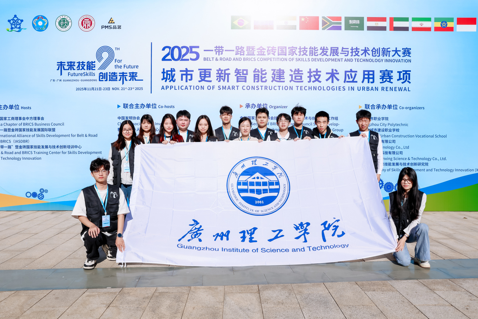 为深入贯彻落实习近平总书记关于技能人才工作的重要指示精神,积极响应金砖国家中关于技能发展工作的相关要求,通过举办城市更新智能建造技术应用赛项,实现以赛促教、以赛促学、以赛促改、以赛促建的产教融合赛事创新,有力推动人工智能产业需求与新一代信息技术的迭代发展。本次赛事由金砖国家工商理事会中方理事会主办,中国发明协会、教育部中外人文交流中心联合主办,品茗科技股份有限公司等单位联合承办,在广州市城市建设职业学校和广州城市职业学院共同举办。赛事聚焦城市更新与智能建造技术的创新应用与实践比拼,吸引了全国各地顶尖参赛队伍同台竞技,核心涵盖三大板块:BIM建模与深化;建筑机器人仿真编程系统实操(含工艺流程认知、施工模拟建造等虚拟实训内容);智能检测与监测。