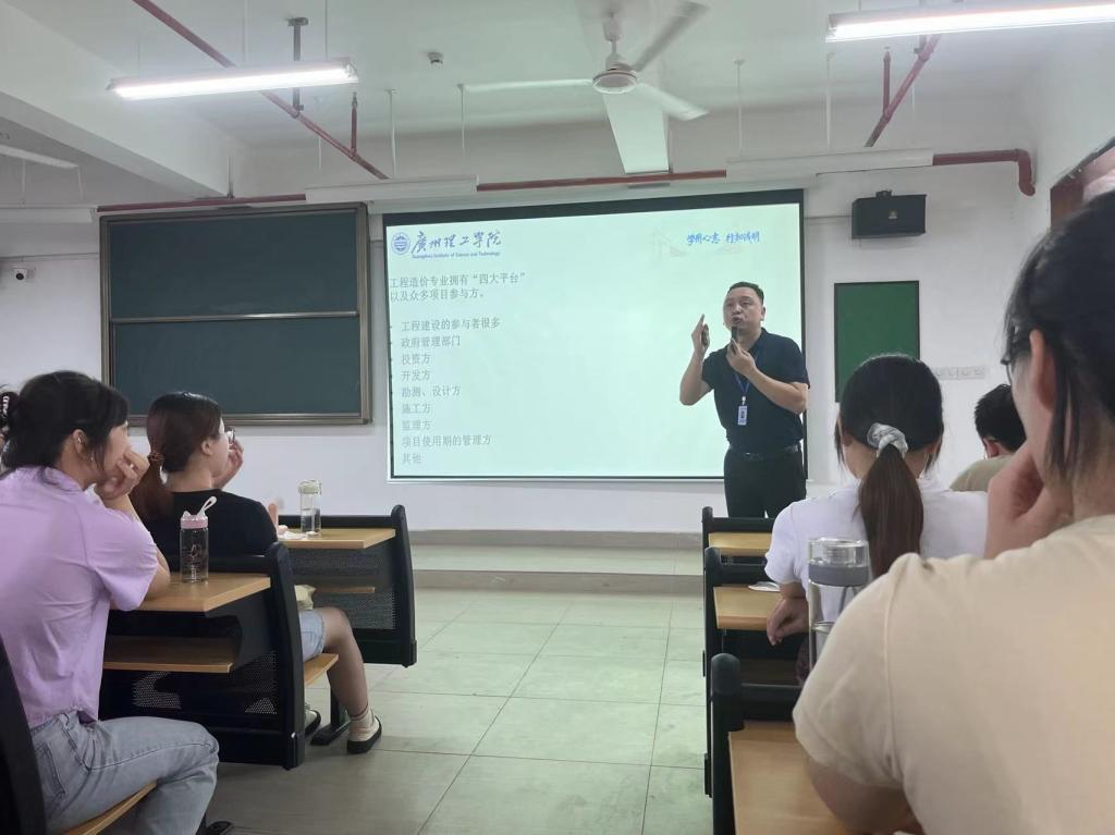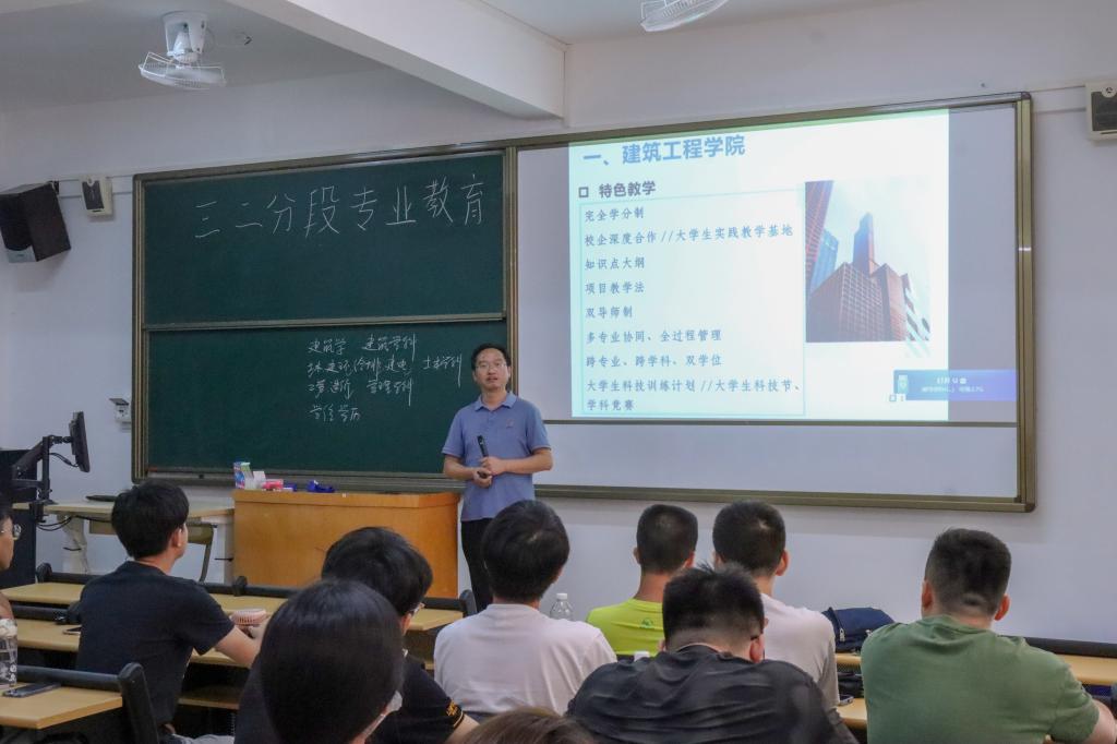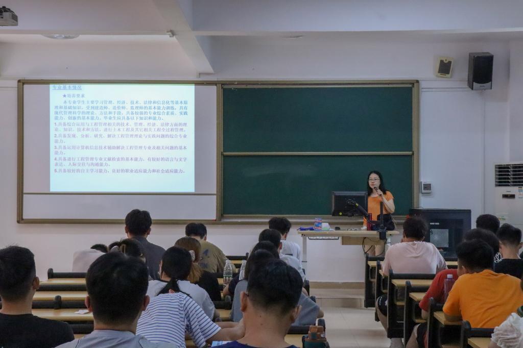 吴从晓博士以 “土木工程专业教育”为题,从土木工程专业特点、概况以及方向,结合同学们的大学生活进行专业教育,给土木工程专业的同学做出专业学习引导。周雨薇主任以“工程管理专业教育”为题,详细讲解了关于专业的相关知识以及专业的前景,为工程管理专业的同学答疑解惑以后的就业问题,既加强了对学生工程管理专业教育,又为培养高质量专业人才铺垫。侯庆华副院长为三二分段的同学做专业教育讲座,以简单明了的方式让同学们更加明白三二分段要学习的专业内容,分析了三二分段教育的内容以及相关政策的出台,为学生分析形式以及利弊,也让同学们对自己的未来规划更加清晰。詹夏然高工以“工程造价专业教育”为题,详细讲解了关于专业的相关知识以及专业的前景,并着重强调了专业知识的重要性。他以现实工作的角度分析专业的技术性,并让各位新生明确自己的学习目标,定下长远的学习计划。做到能够在有限的时间中最大程度的提升自己,成为具有广阔视野的高素质应用型人才。