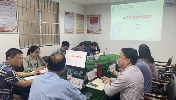 广东交通职业技术学院土木工程学院院长徐凯燕对吴炎海院长一行的到来表示热烈欢迎,并对该学院的办学规模、人才培养、师资队伍、各专业学生数等情况作了介绍。党委副书记宗宸、副院长肖芳分别就招生就业、教学管理等内容进行了深入交流。