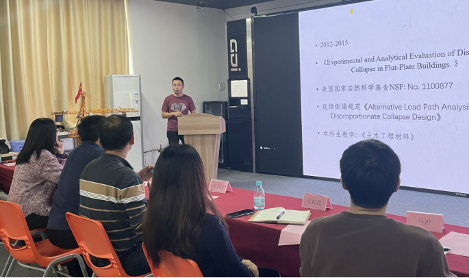 具有多年海外建筑行业工作经验的留美博士彭中华,他介绍了在美国读博和工作期间的研究方向与内容,包括楼层连续倒塌的力学性能研究和分析,运用AI进行基建检测的案例等。