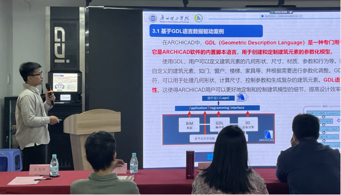 张光林老师专门针对精装修BIM应用项目进行了详细的介绍,该项目通过师生团队的研究实现了数据驱动的快速建模技术,并使参数化的模型与成本和造价数据关联,帮助施工方达成更有效的造价管理目标,项目还授权了发明专利、成功立项了省住建厅科技项目,成果丰厚。该项目也是工作室第一次尝试与BIM二次开发相关的研究工作。