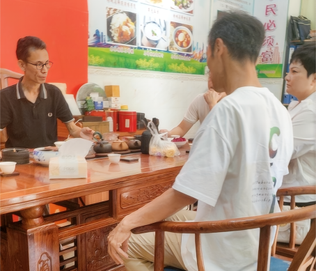 在开业揭幕仪式后,我院师生与珍珠马蹄产业园负责人余振形就后续合作展开了更为深入的交流,余振形说明了珍珠马蹄产业园存在的发展问题以及发展目标。杨子钊则介绍了我院专业优势,并提出在布置检测设备与搭建云平台相结合可以有效推动珍珠马蹄产业园种植和生产的科学化、低碳化。此外,双方就后续的基地运行与人才培养展开了详细的讨论。以我们学院建筑环境与能源应用工程专业的低碳建筑环境工程控制技术,为基地建立农业数字化平台、对绿色农业种养植与环境进行过程数据记录,助力农业数字现代化,并在接下来的各个种植周期,探索各种高附加值绿色农产品进行低碳人工种养殖环境营造的可行之道,为新一代绿色工程技术在农业建设应用探索奠定基础,为健康农业食物安全的环境建设保驾护航。为服务农业新质生产力的工程人才培养,以实践为基础,摸索出助力绿色健康低碳农业的新建环人才培养发展路径。